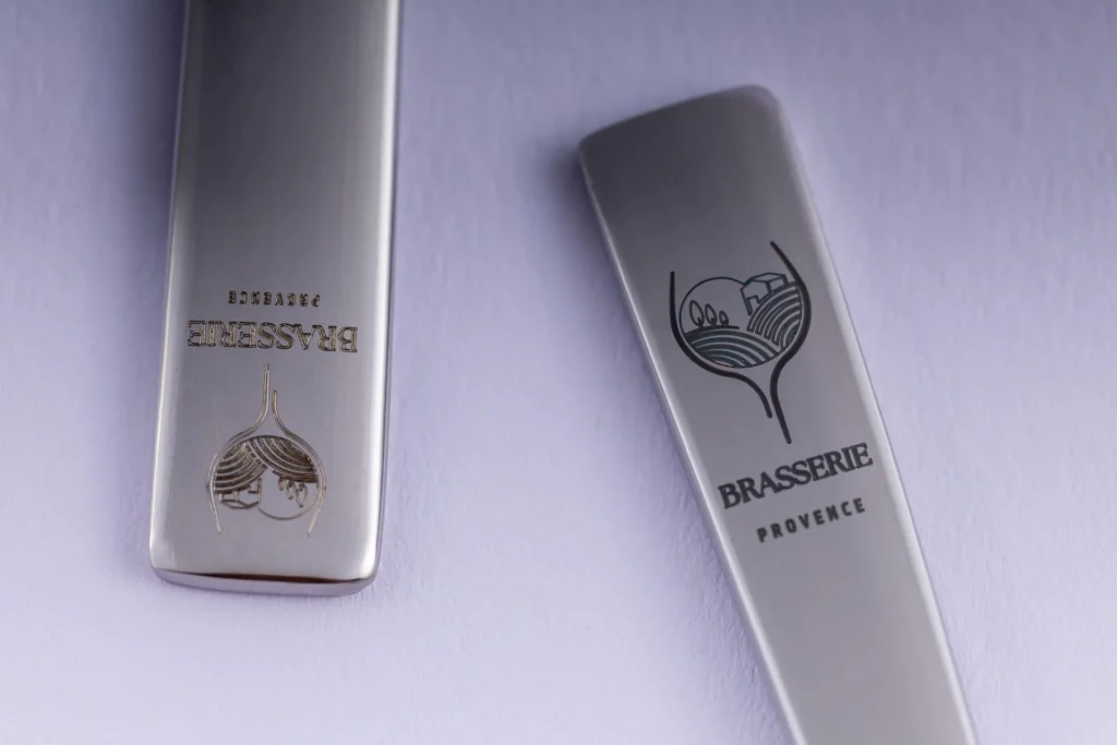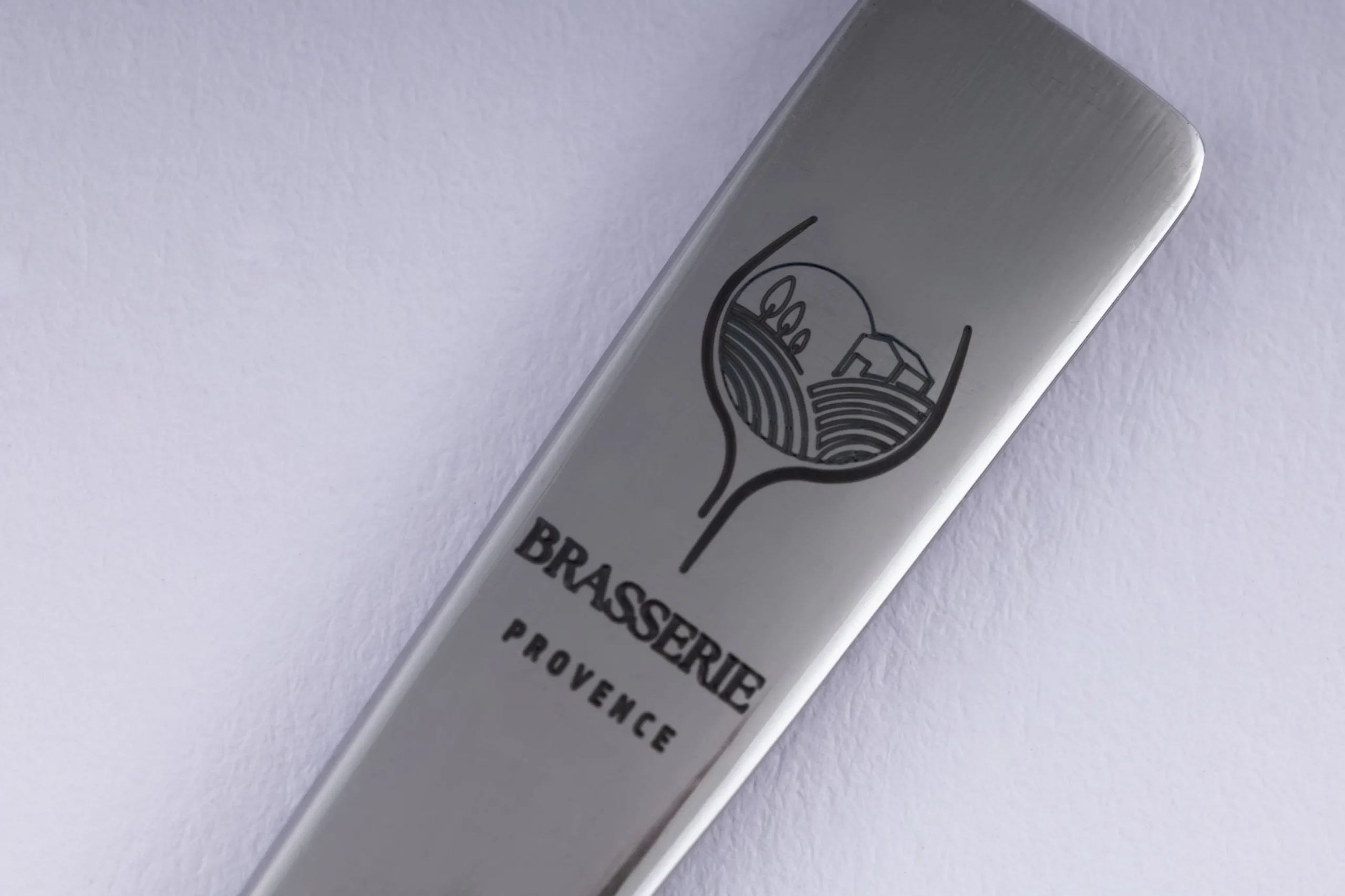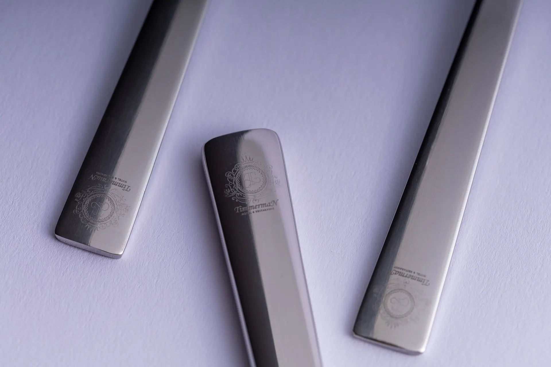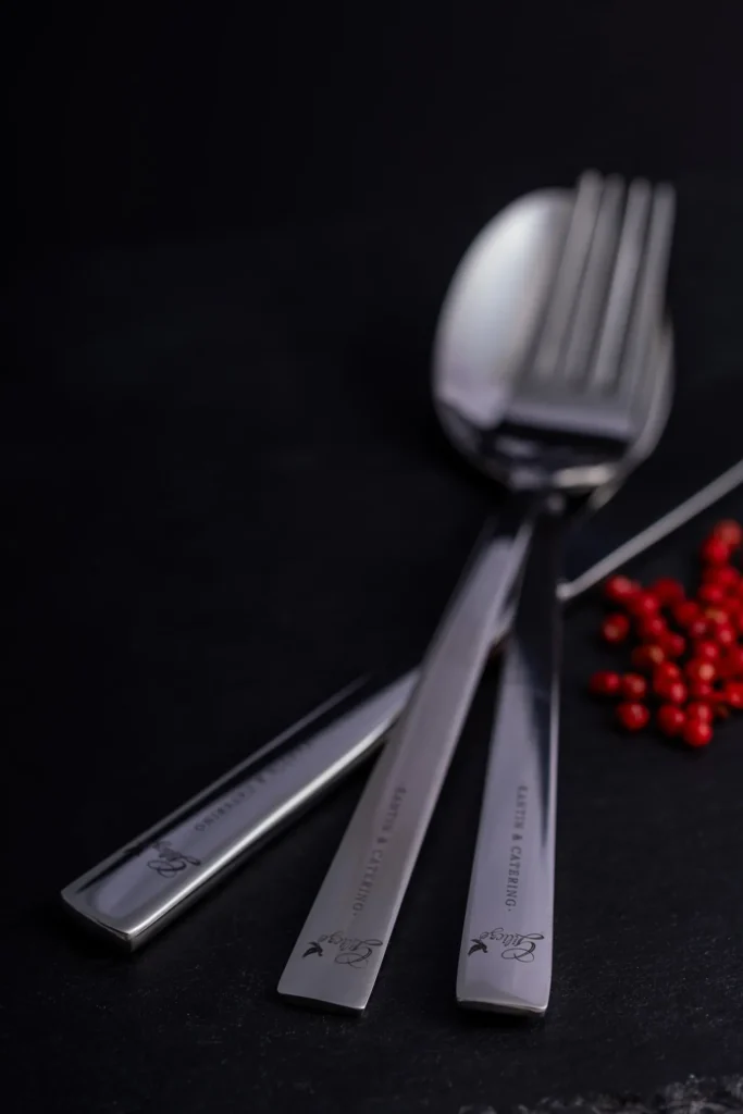 Logo-graviertes Besteck stärkt die Markenpräsenz dezent und dennoch wirkungsvoll – bei jedem einzelnen Biss.